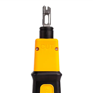 Designed for use with our EPB-series blades or other similar brands, this punchdown tool is perfect for any telecom or data communications installer. This punchdown tool features the following: Cleanly terminates and trims wires in 66 and 110-style cross connect blocks as well as 110-style wall jack modules Comfortable molded rubber grip on handle eliminates slipping and reduces hand fatigue Hi/Lo impact settings (Hi: 40lb / 178 N, Lo: 30lb / 133 N) Combination Hook/Spudger stored in the chassis Color coded body is half yellow (cut side) and half blue for ease of use Enlarged blade storage compartment for easy storage Tested up to 100,000 cycles at high impact setting, ensuring long life during use Compatible with all our EPB-series blades and other similar brands (sold separately) Lifetime Warranty