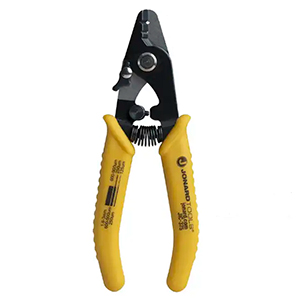 The Jonard Tools JIC-375 Three Hole Fiber Optic Stripper performs all common fiber stripping functions. This fiber optic stripper features the following: Strips the 1.6 mm-3.0 mm fiber cable jacket, 600-900 micron buffer coating, and 250 micron acrylate coating to expose the 125 micron glass fiber First hole strips the 1.6 mm-3.0 mm jacket exposing the optical fiber and Kevlar strength members Second hole strips the buffer coating, exposing the acrylate coating on the optical fiber Third hole strips the acrylate coating exposing the glass fiber without nicking or scratching the fiber Angled jaw guides fiber into the 3rd hole to prevent accidental cutting of the fiber Safety lock allows the tool to be easily stored when not in use Tool is made of strong high carbon steel and handle is made of TPR (thermoplastic rubber) for high durability and greater comfort