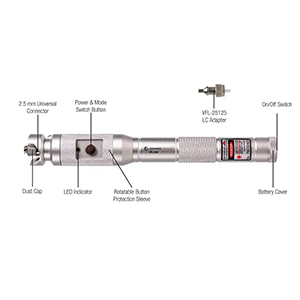 Compact and rugged visual fault locator with a powerful 650nm red laser for identifying breaks, bends, and faulty connectors in fiber optic cables. Delivers up to 10 km range with a universal 2.5 mm connector, making it ideal for testing and troubleshooting single mode and multimode fibers. |